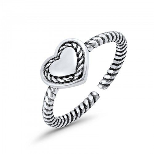 Heart Toe Ring Twisted Band Adjustable 925 Sterling Silver (6mm)