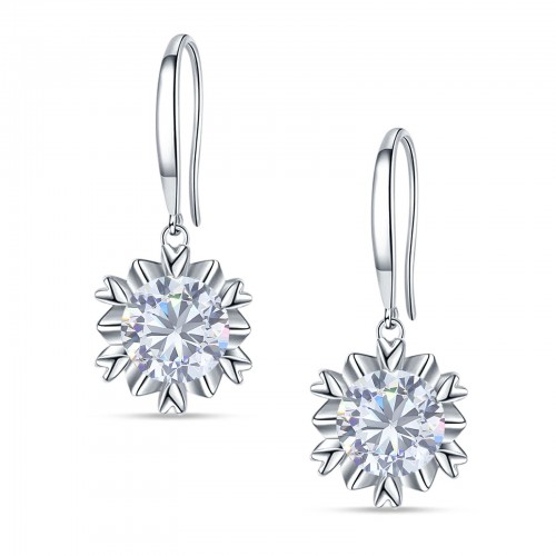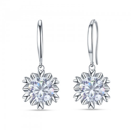 Round Cubic Zirconia Flower Heart Designer Fishhook Earring 925 Sterling Silver Wholesale 21mm