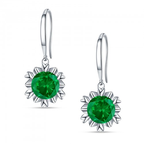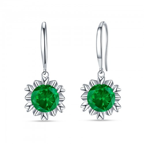 Round Green Emerald EM Flower Heart Designer Fishhook Earring 925 Sterling Silver Wholesale 21mm