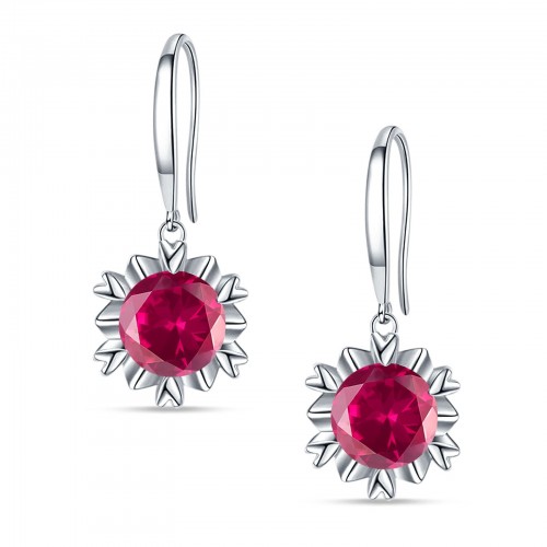 Round Ruby RU Flower Heart Designer Fishhook Earring 925 Sterling Silver Wholesale 21mm