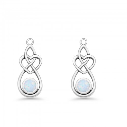 Round Lab Created White Opal Celtic Knot Heart Fishhook Earring 925 Sterling Silver