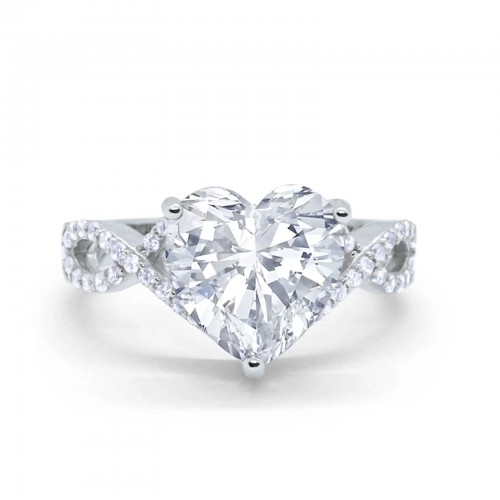 14K White Gold Accent Heart Promise Ring Bridal Simulated CZ Wedding Engagement Ring Size 7