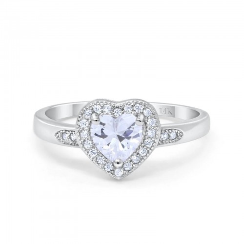 14K White Gold Halo Heart Promise Simulated CZ Wedding Engagement Ring Size 7 14K Gold