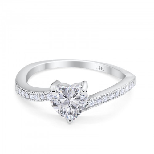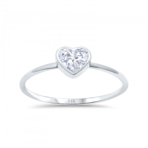 14K White Gold Solitaire Heart Promise Ring Bridal Simulated CZ Wedding Engagement Size 7 14K Gold