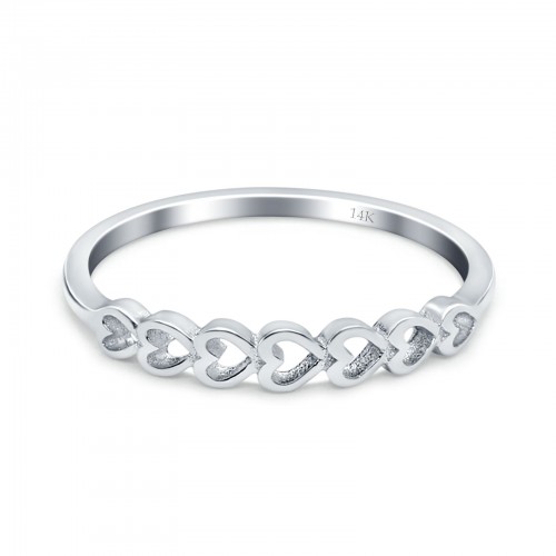 14K White Gold Hearts Band Simple Wedding Engagement Ring (3mm) 7