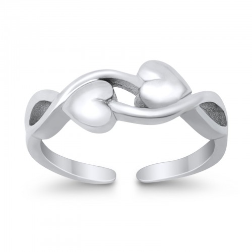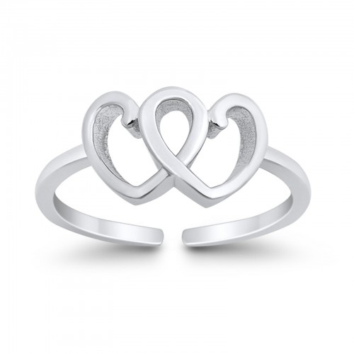 Adjustable Double Heart Toe Ring Band 925 Sterling Silver (5mm)