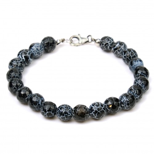Weathered Agate 8mm Faceted Round Bracelet with Sterling Silver Trigger Clasp
