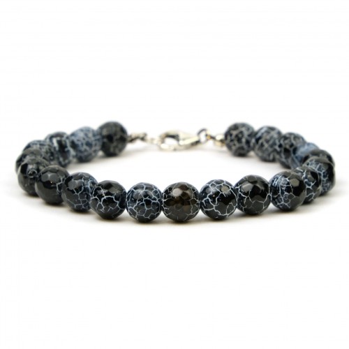 Weathered Agate 8mm Faceted Round Bracelet with Sterling Silver Trigger Clasp