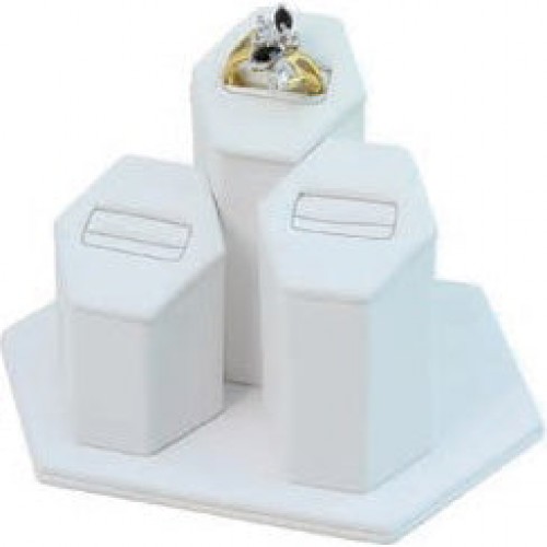 Set of 3 Hexagonal Ring Columns on Base in Pearl, 5.25″ L x 3.75″ W