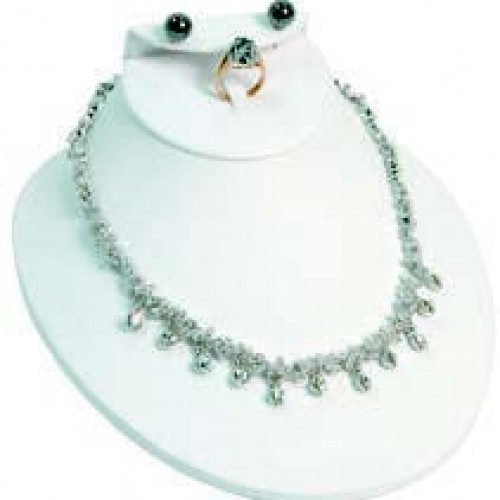 Combination (Ring and Earring) Bust Display in White Leatherette, 4″ H