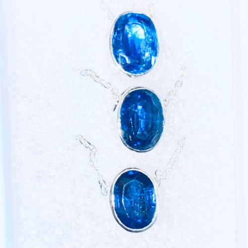 Blue Kyanite Faceted Jewelry 3 pc Box Set Sterling Silver Earrings, Pendant, Adjustable Ring #LV3232