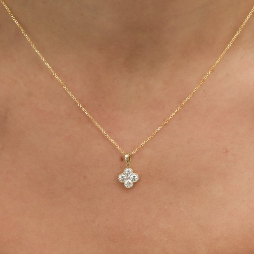 .69CTW Round Diamond Engagement Ring – Scalloped Halo – 14K White Gold