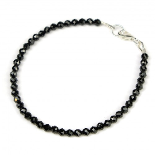 Black Tourmaline 3mm Faceted Round Bracelet with Sterling Silver Trigger Clasp