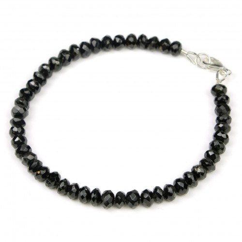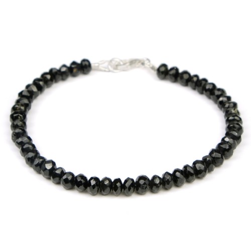 Black Tourmaline 4mm Faceted Rondelle Bracelet with Sterling Silver Trigger Clasp