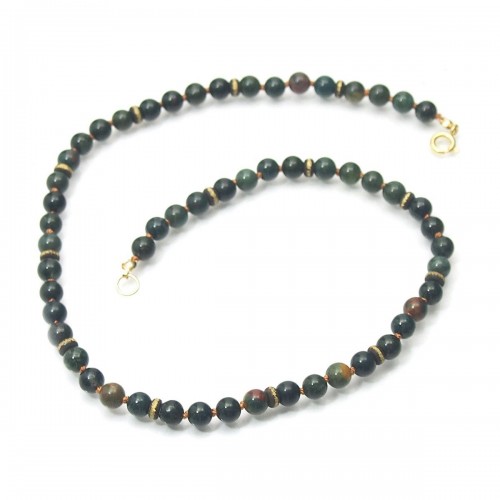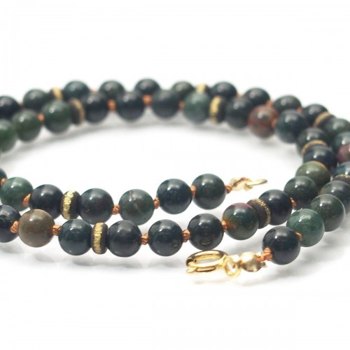 Bloodstone Smooth Rounds Knotted Necklace 6mm with Gold Filled Spring Clasp