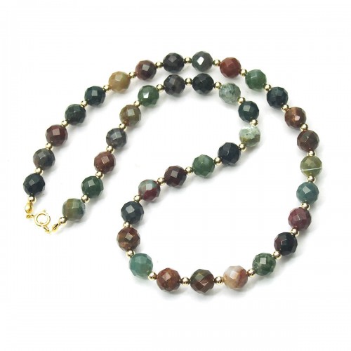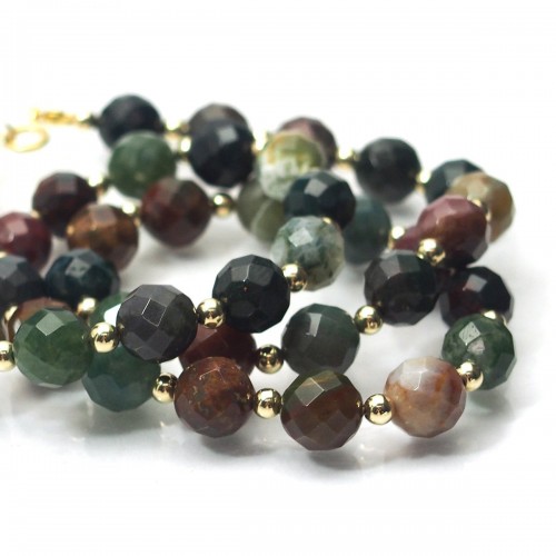 Bloodstone Faceted Rounds Necklace 10mm with Gold Filled Spring Clasp