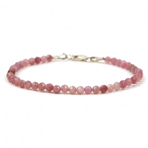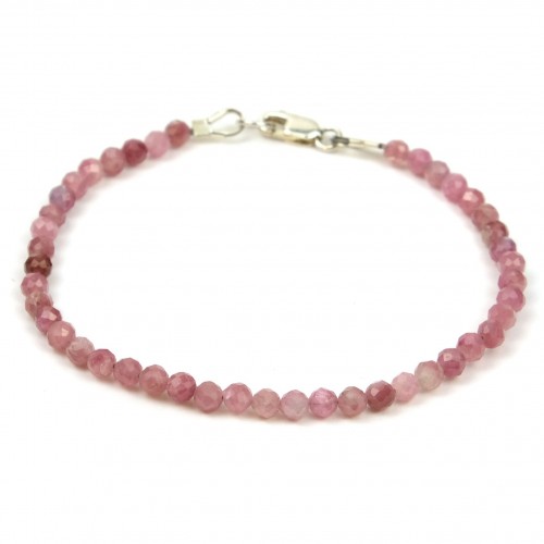 Pink Sapphire 3mm Faceted Round Bracelet with Sterling Silver Lobster Claw Clasp