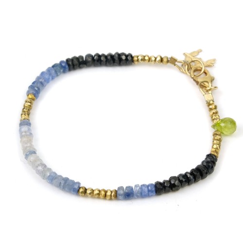 Sapphire and Peridot Bracelet with Gold Filled Trigger Clasp and Love Bird Detail