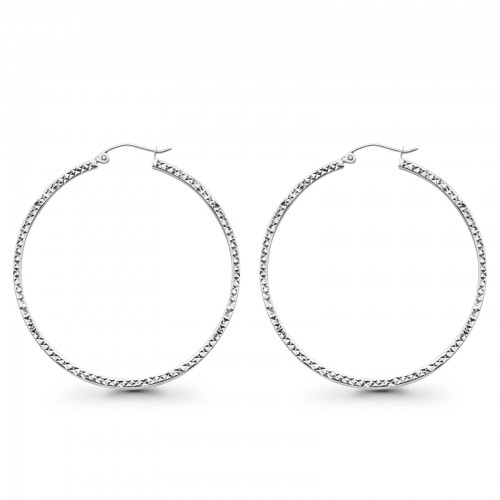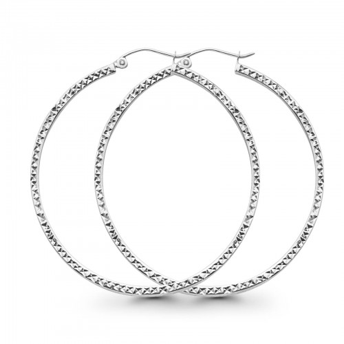Hollow Hoop Snap Closure Earrings Full Square Tube Diamond Cut 14K White Gold 2.8grams 45mm