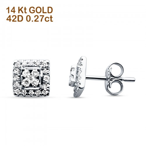 Diamond Stud Earrings Square Shaped Cluster 14K White Gold 0.27ct Wholesale