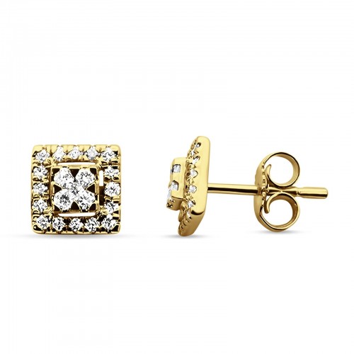 Diamond Stud Earrings Square Shaped Cluster 14K Yellow Gold 0.27ct Wholesale