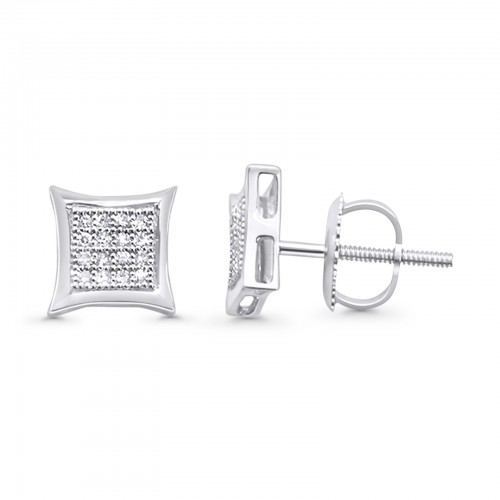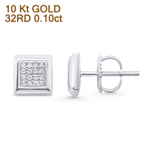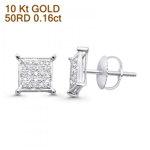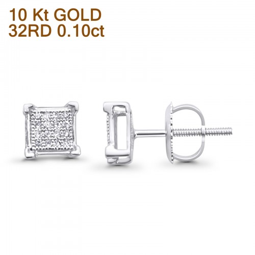 Solid 10K White Gold 7.9mm Square Micro Pave Diamond Stud Earring Wholesale