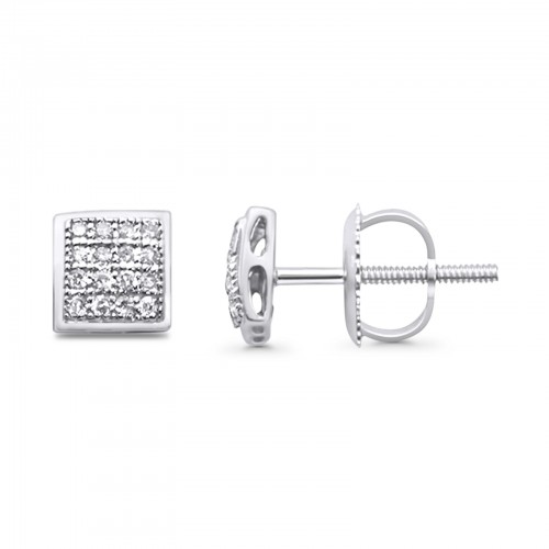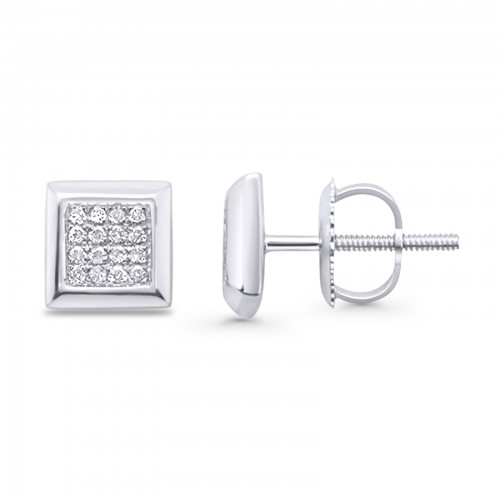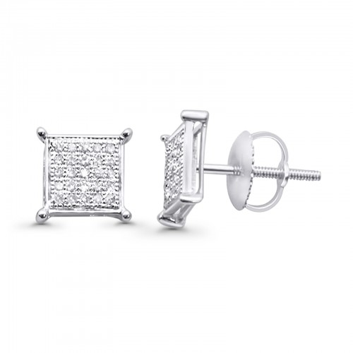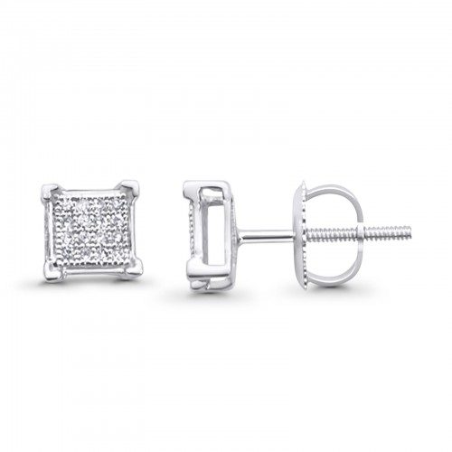 Solid 10K White Gold 7.1mm Square Micro Pave Diamond Stud Earring Wholesale