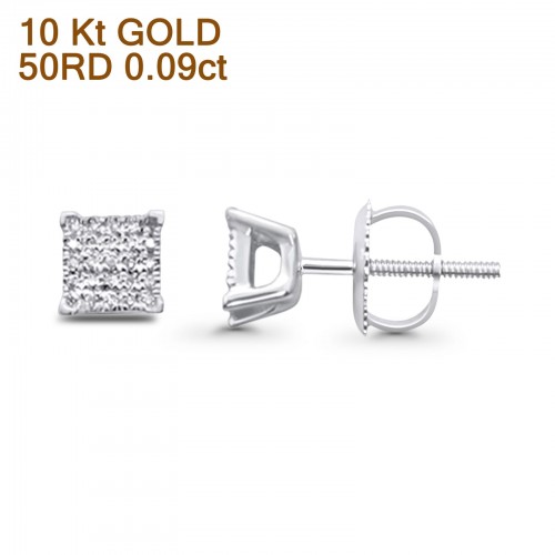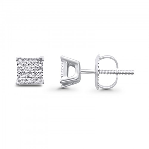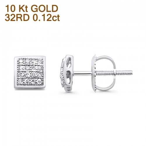 Solid 10K White Gold 6mm Square Shaped Cluster Round Pave Diamond Stud Earrings Wholesale