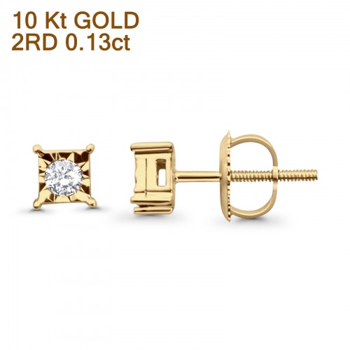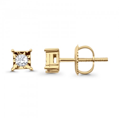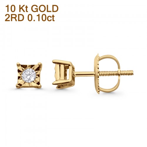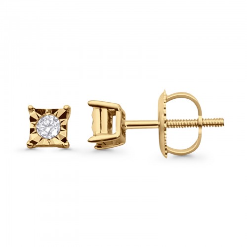 Solid 10K Yellow Gold 4.8mm Square Shaped Solitaire Round Diamond Stud Earrings Wholesale