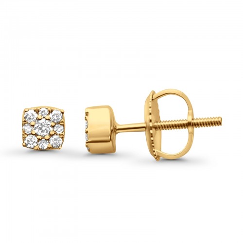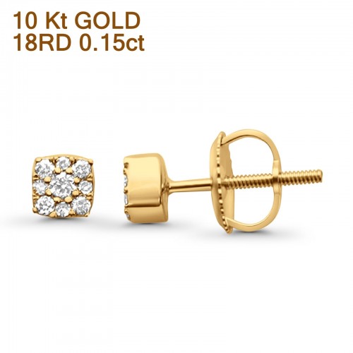 Solid 10K Yellow Gold 4mm Square Shaped Pave Round Diamond Stud Earring Wholesale