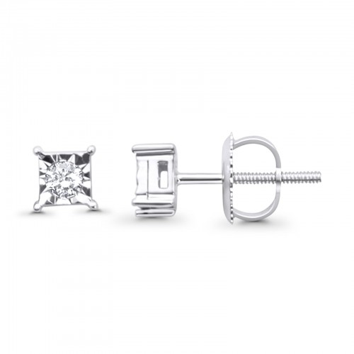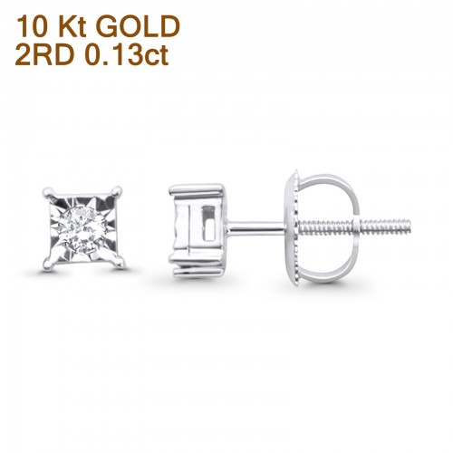 Solid 10K White Gold 4.8mm Square Shaped Solitaire Round Diamond Stud Earrings Wholesale