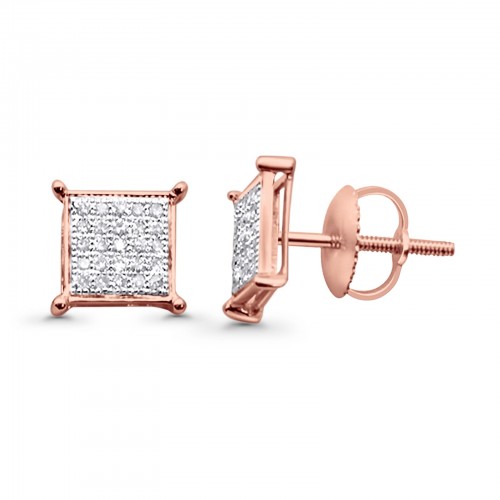 Solid 10K Rose Gold 7.9mm Square Micro Pave Diamond Stud Earring Wholesale