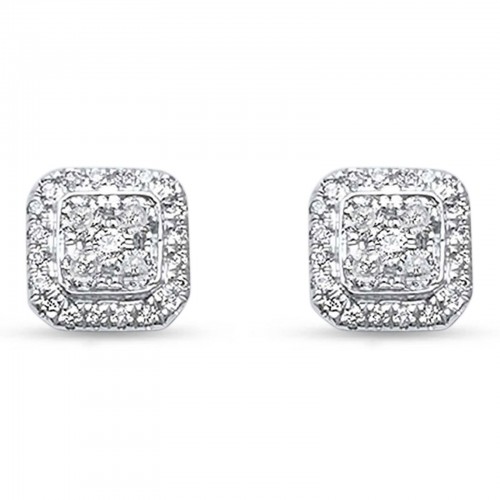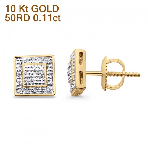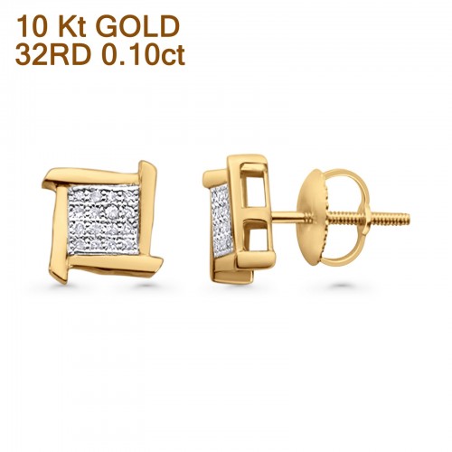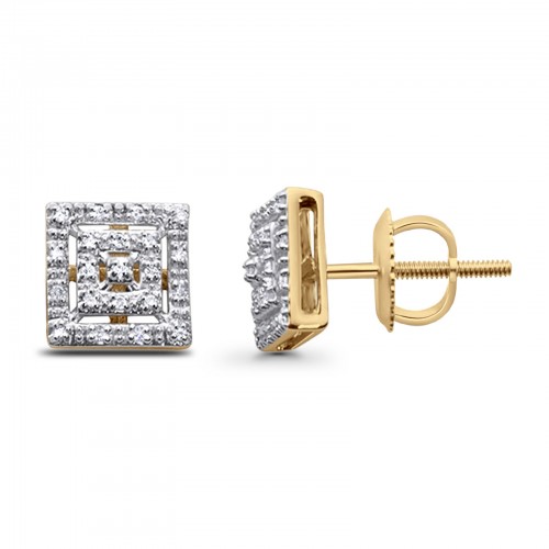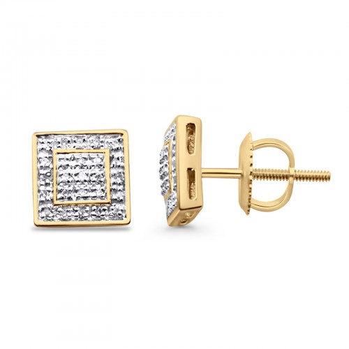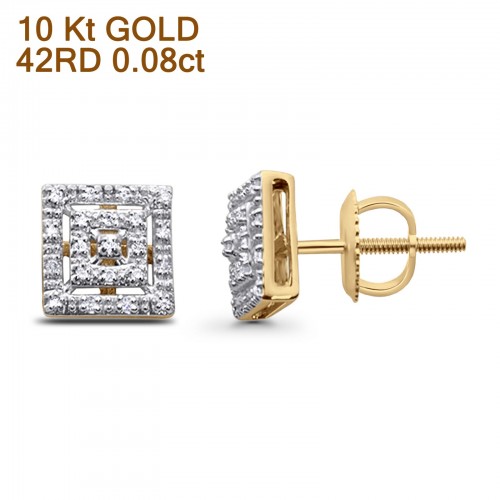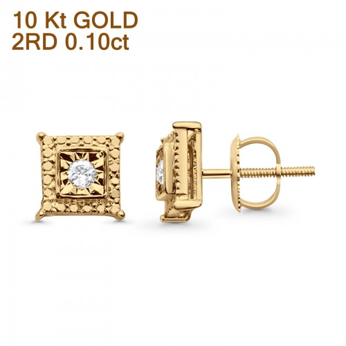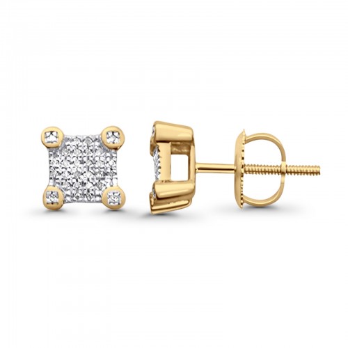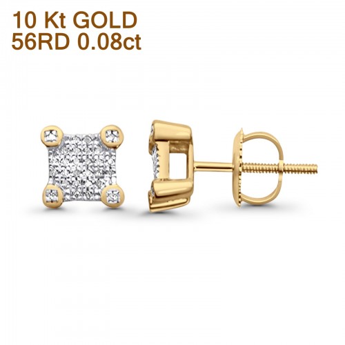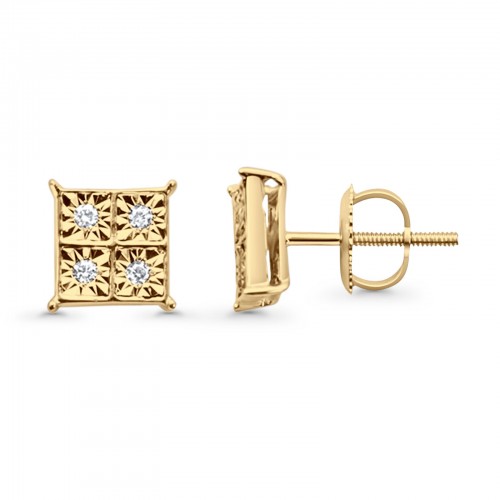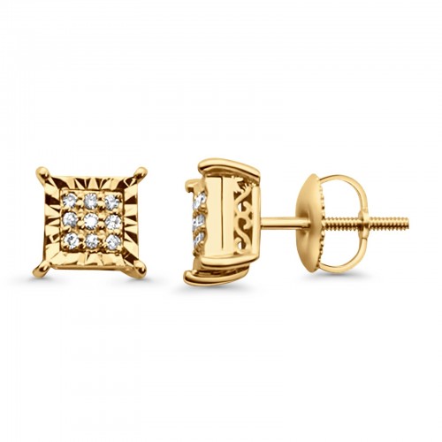 Solid 10K Yellow Gold 7mm Square Shaped Round Diamond Stud Earring Wholesale