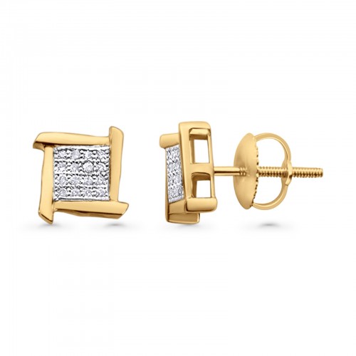 Solid 10K Yellow Gold 7.9mm Square Micro Pave Diamond Stud Earring Wholesale