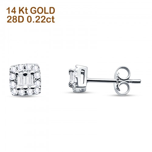 Solid 14K White Gold 5mm Modern Square Round Baguette Diamond Stud Earrings Push Back Wholesale