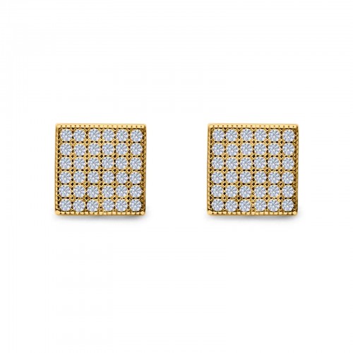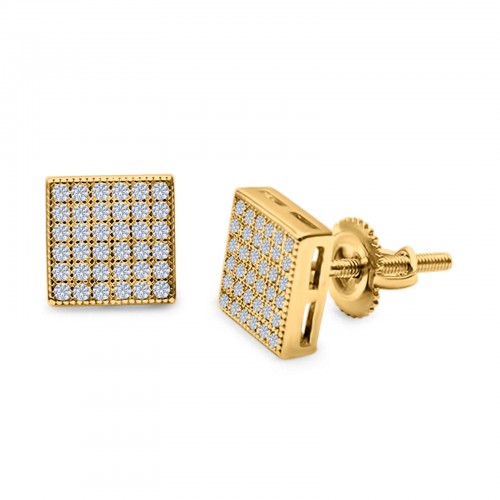 Square Stud Earrings Pave Yellow Tone, Simulated CZ Screw-Back 925 Sterling Silver