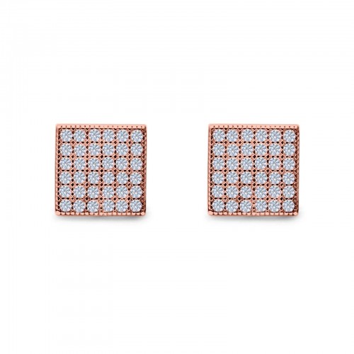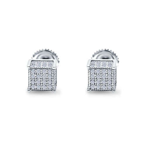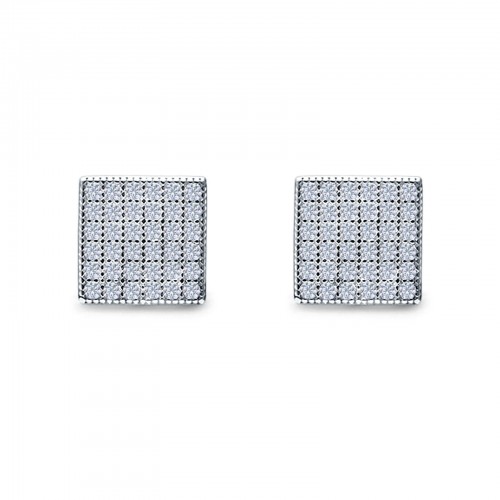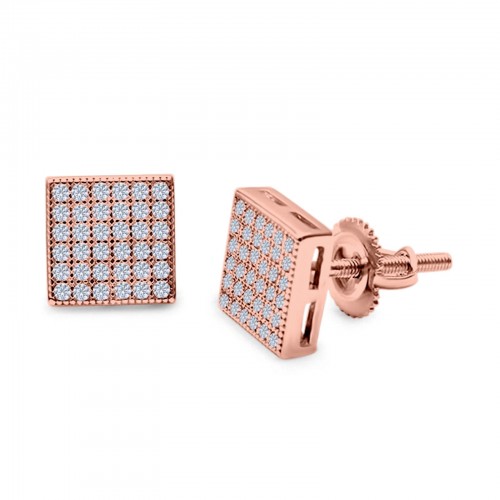 Square Stud Earrings Pave Simulated CZ Screw-Back 925 Sterling Silver