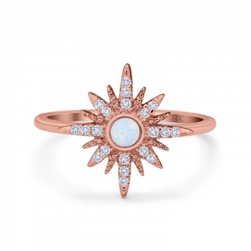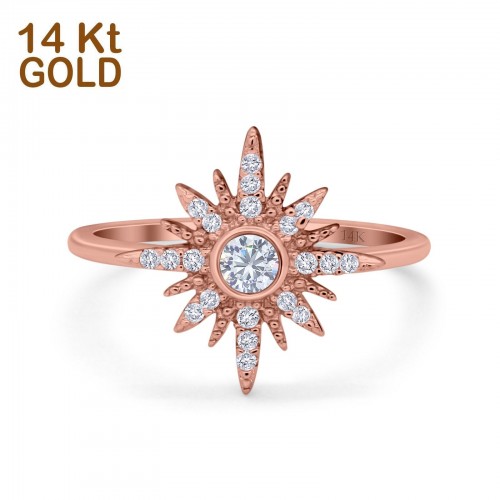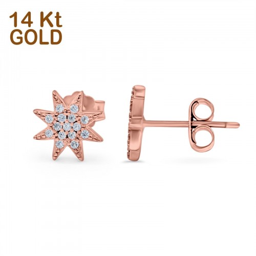 14K Rose Gold Round Simulated Cubic Zirconia Trendy Starburst Stud Earrings