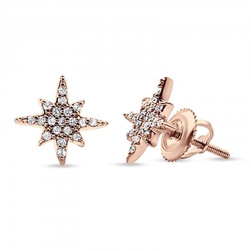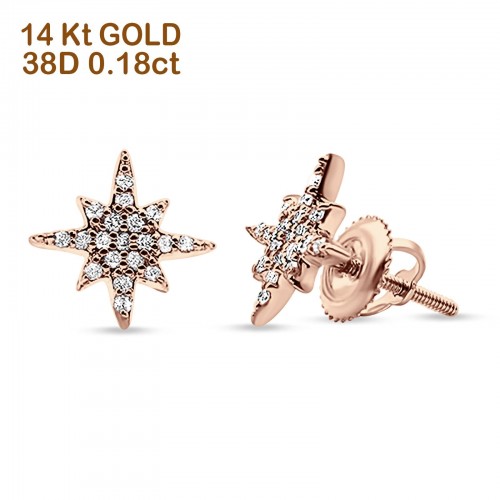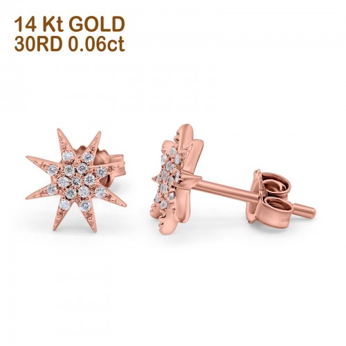14k Solid Rose Gold Diamond Tiny Starburst Earring Wholesale 10mm