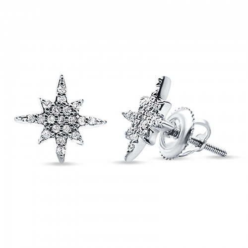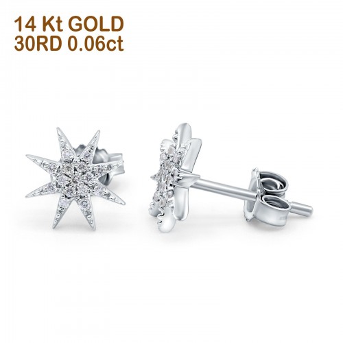 14k Solid White Gold Diamond Tiny Starburst Earring Wholesale 10mm