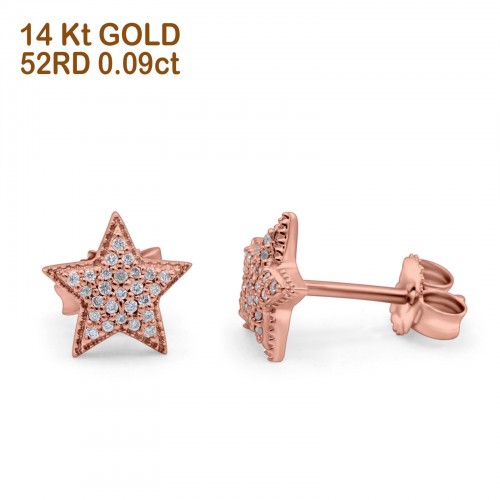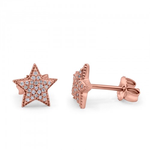 14K Rose Gold .09ct Trendy Micro Pave Star Diamond Stud Earrings