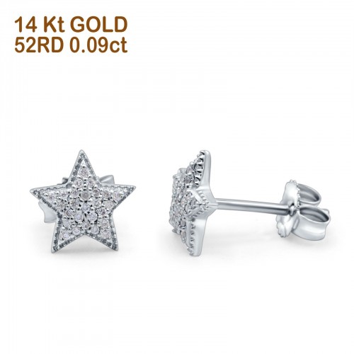 14K White Gold .09ct Trendy Micro Pave Star Diamond Stud Earrings