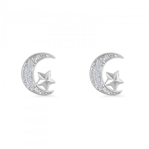 Moon & Star Stud Earrings Cubic Zirconia 925 Sterling Silver Wholesale