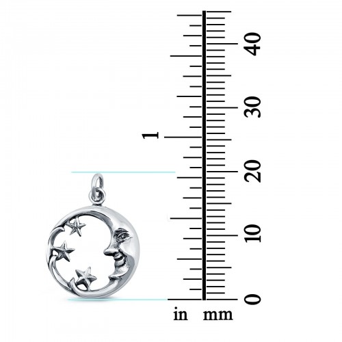 Moon and Dangling Star Charm Pendant Simulated Cubic Zirconia 925 Sterling Silver