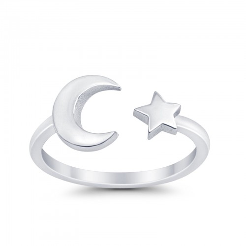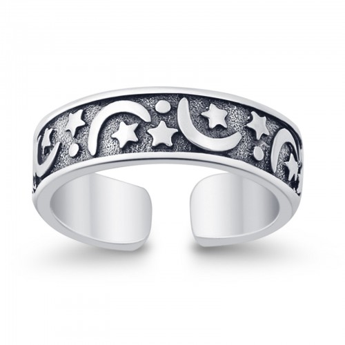 Moon & Stars Toe Ring Adjustable Band 925 Sterling Silver (9mm)