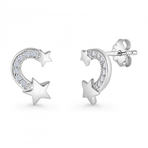 Shooting Star Stud Earrings Cubic Zirconia 925 Sterling Silver Wholesale