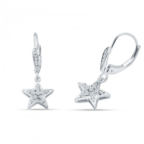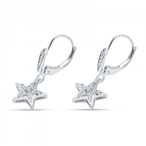 Star Dangle Drop Hoop Earring Cubic Zirconia 925 Sterling Silver Wholesale 25.3mm