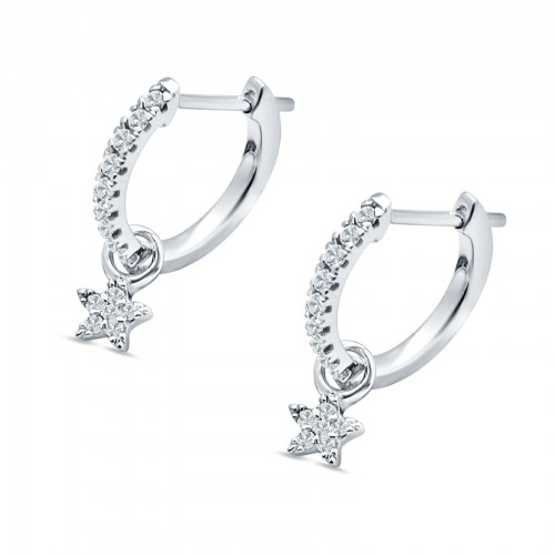 Star Cluster Charm Huggie Hoop Earring Cubic Zirconia 925 Sterling Silver Wholesale 18mm