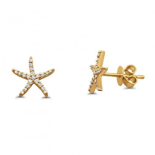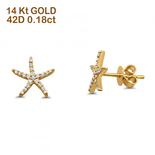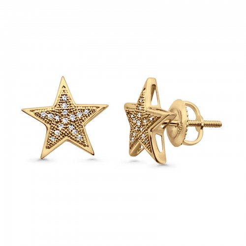 Solid 14K Yellow Gold 10mm Star Diamond Stud Earrings Wholesale