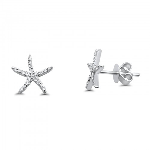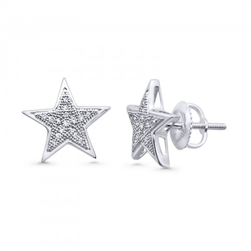 Solid 14K White Gold 10mm Star Diamond Stud Earrings Wholesale